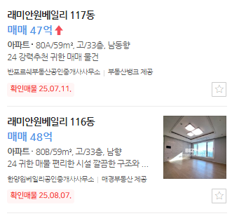 네이버 부동산에 올라와 있는 호가를 보면 규제 이후에도 원베일리 호가는 계속 상승하는 중이다.