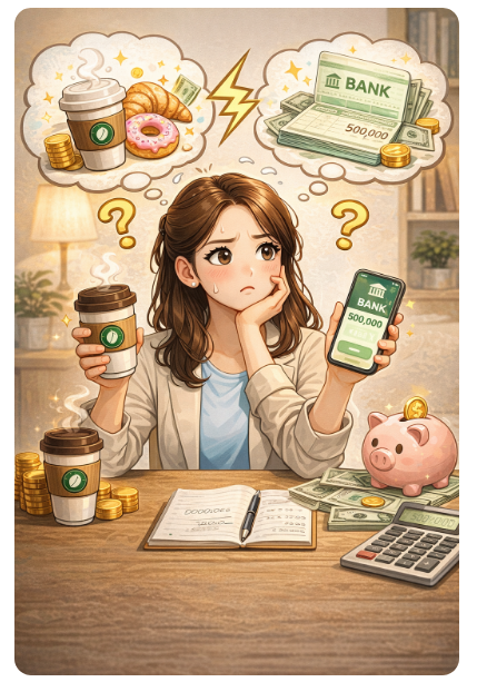 - 1억 로드맵의 장애물: 225만 원은 연봉 3,000만 원 직장인의 한 달 치 월급과 맞먹습니다. 여러분은 1년에 한 달을 '커피와 과자'를 위해 무임금으로 일하고 있는 셈입니다.