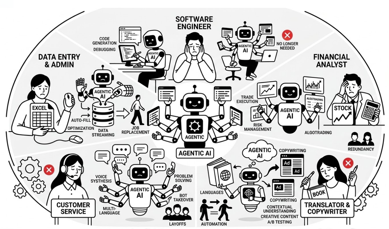 기업 내에서 발생하는 방대한 데이터를 분류 가공 입력하던 사무직 종사자들은 에이전틱 AI의 가장 쉬운 타깃입니다.
