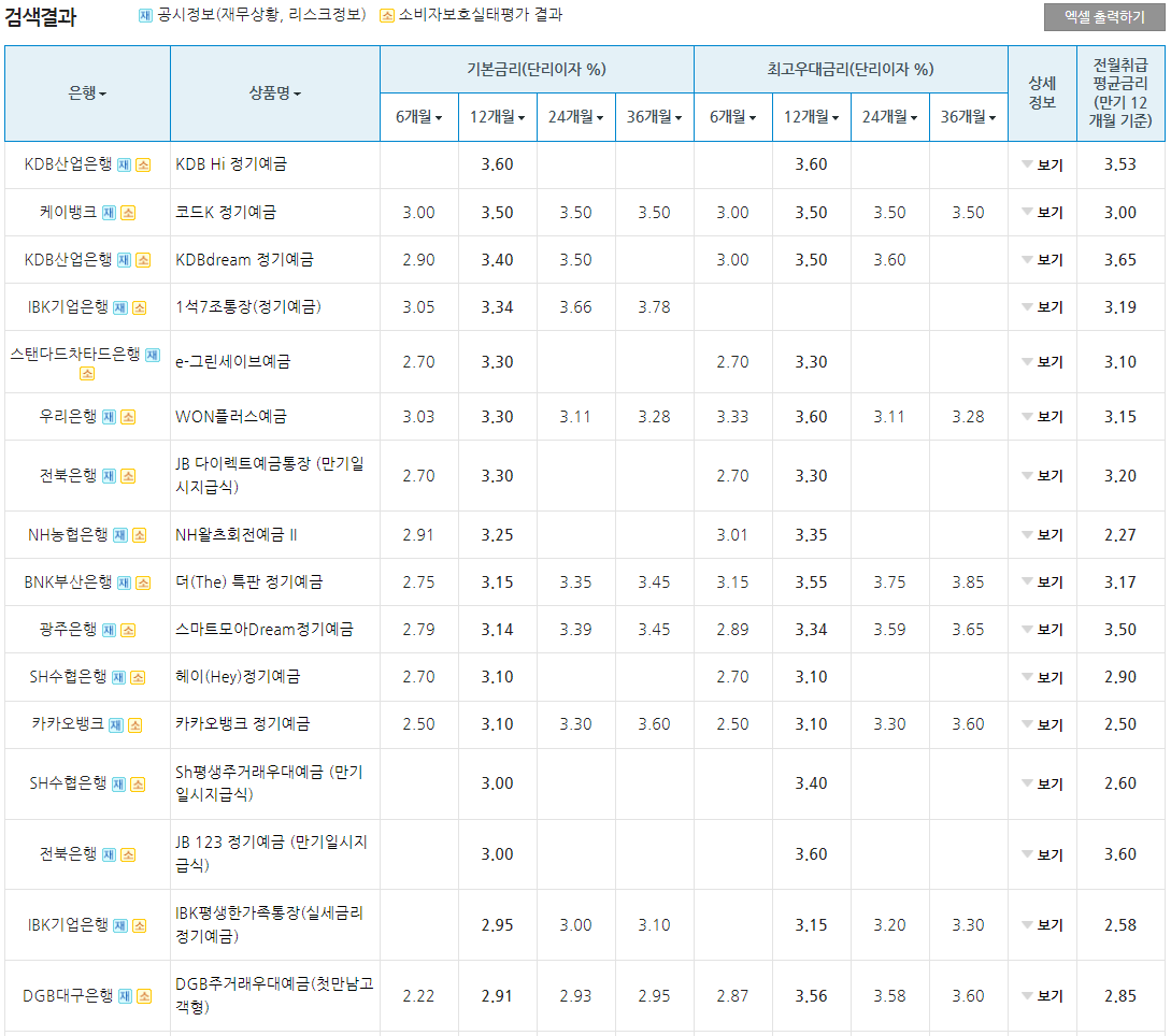 위 자료를 보면 산업은행 3.6%, K뱅크 3.5% 등등. 대략 3.6%의 금리가 상단을 유지하고 있다.