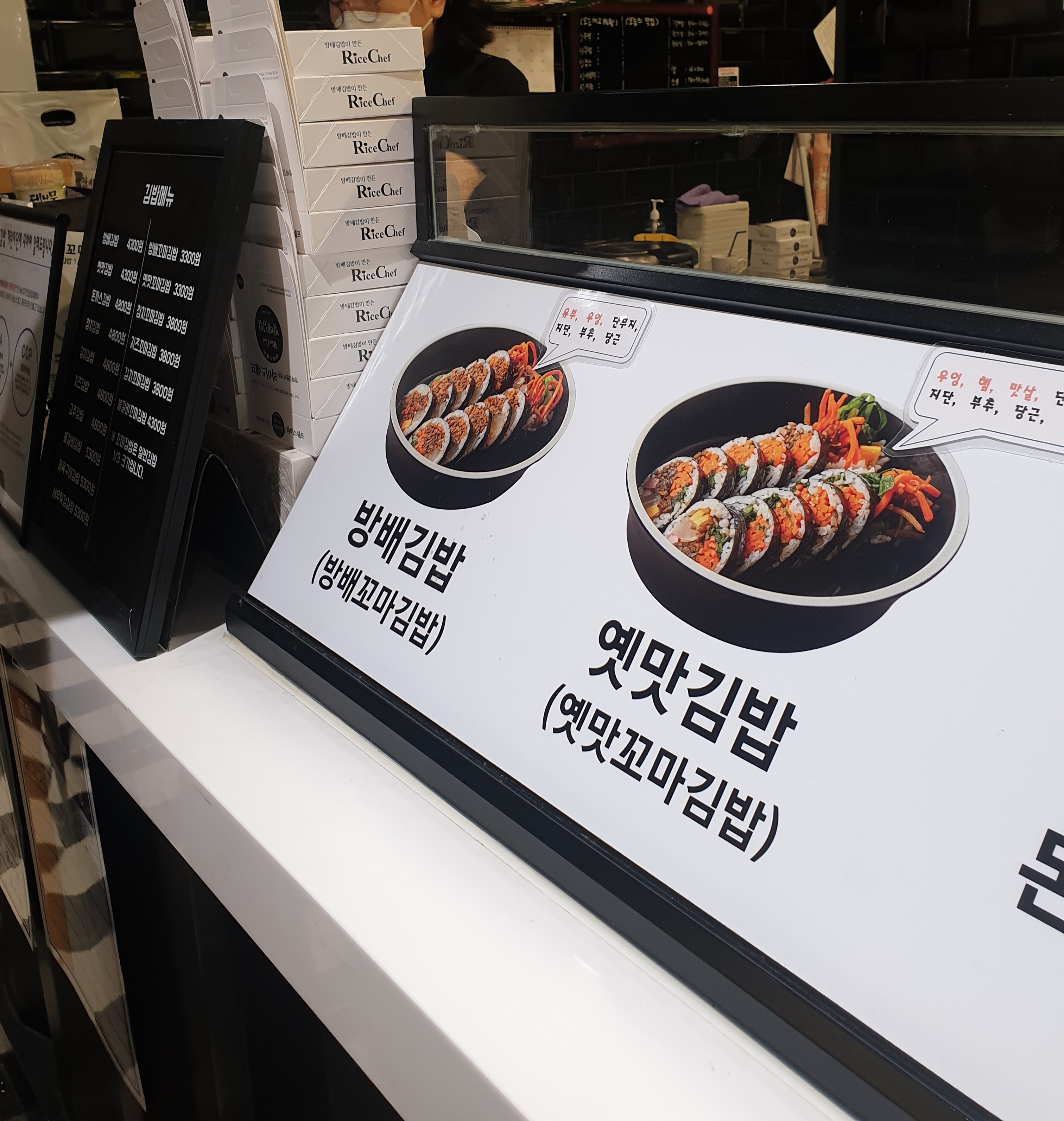 기본인 방배김밥과 옛맛김밥이 4,300원이고, 주문했던 김치김밥이 4,800원, 제육김밥이 5,300원이다. 대략 바르다 김선생 김밥집하고 가격이 엇비슷하다.