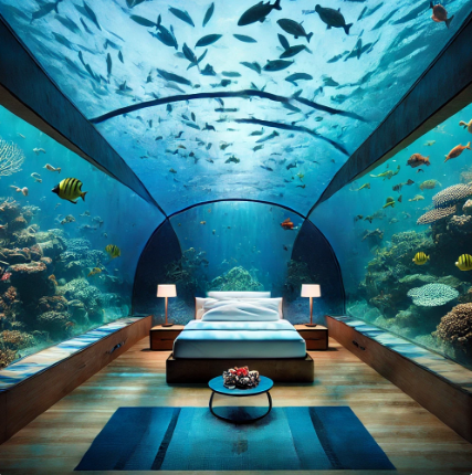 - 특징: 무라카는 세계 최초의 수중 호텔 객실로 유명합니다. 수중 숙박 시설은 해저 약 5미터 깊이에 위치하며, 통유리로 된 벽을 통해 바닷속 풍경을 180도 감상할 수 있습니다. 이 호텔은 해양 생물들이 수영하는 모습을 눈앞에서 감상할 수 있어, 마치 아쿠아리움 속에서 숙박하는 듯한 경험을 제공합니다.