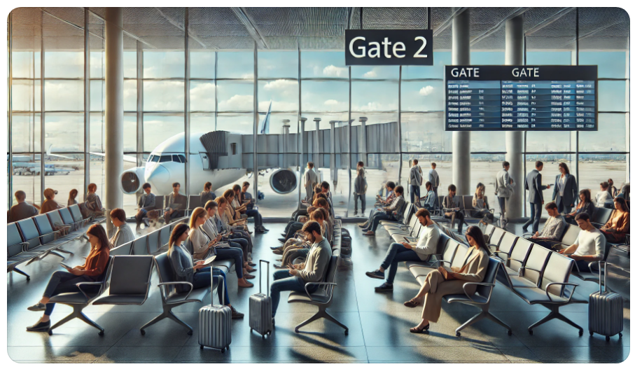 - 공항에는 여러 개의 게이트가 있으며, 보통 숫자와 알파벳으로 표시됩니다(예: Gate A23).
