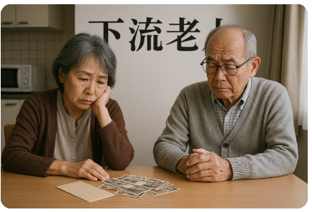 일본은 1990년대 거품경제 붕괴 이후 장기 불황에 빠지며, 기업들이 정규직 채용을 줄이고 비정규직과 파견직을 확대하기 시작했다. 이러한 비정규직 고용은 낮은 임금과 불안정한 일자리, 그리고 퇴직 후 받게 될 공적연금의 축소로 이어졌다. 즉, 과거엔 안정적인 직장생활을 해 온 사람이 노후에 대비할 수 있었지만, 비정규직 세대는 노후에 하류노인으로 전락할 가능성이 훨씬 높다.