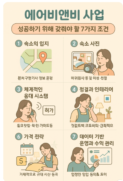 이 글에서는 에어비앤비 사업을 성공적으로 운영하고 싶은 사람이라면 반드시 갖춰야 할 핵심 조건 7가지를 제시합니다. 시작 전 체크리스트로 활용하세요.