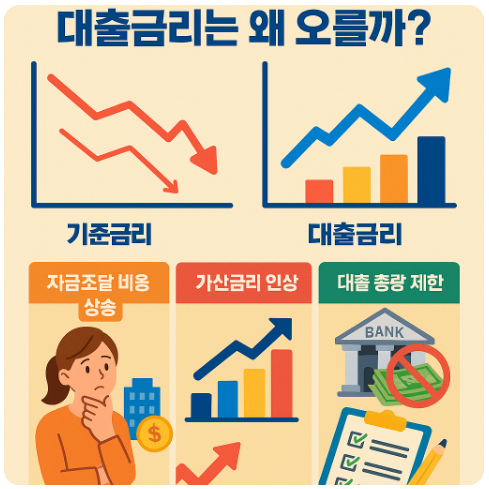 2025년 5월 마지막 주, 한국은행은 기준금리를 0.25%p 인하하는 결정을 내렸습니다. 인플레이션 완화, 내수 진작, 경기부양 필요성 등의 이유에서였습니다. 그런데 이상한 일이 벌어졌습니다. 기준금리는 내려갔는데, 시중은행들의 대출금리는 오히려 인상된 것입니다. “금리 인하 = 대출금리 하락”이라는 상식을 깨는 이 현상은 대체 왜 일어나고 있을까요?