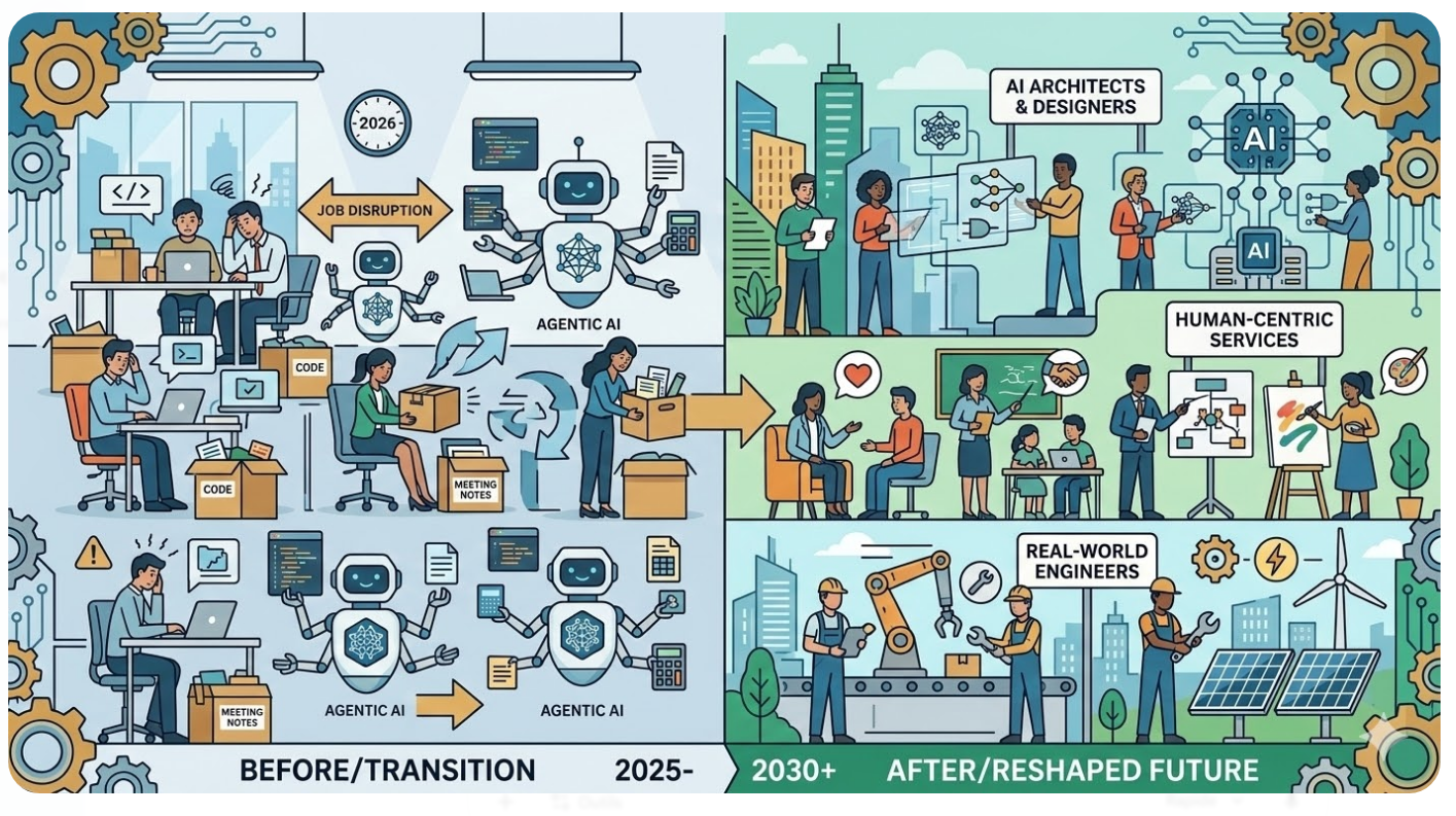 에이전틱 AI 시대에 직업은 수행 중심에서 설계 중심으로 이동합니다. 미래의 노동 시장은 크게 세 가지 축으로 재편될 전망입니다.